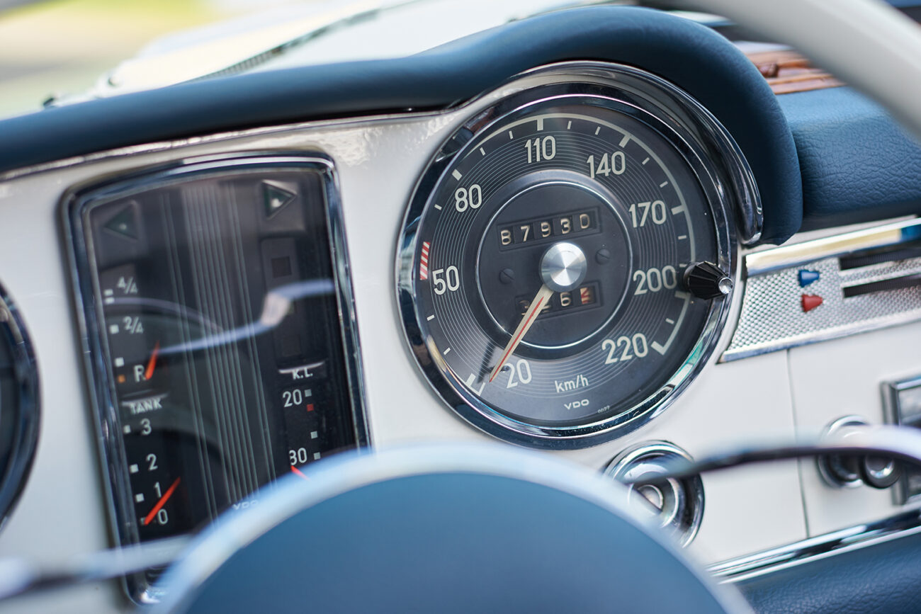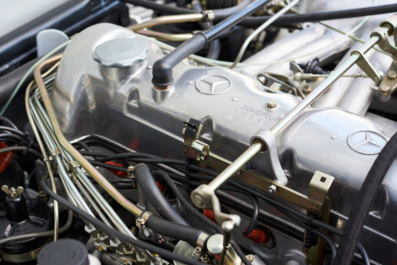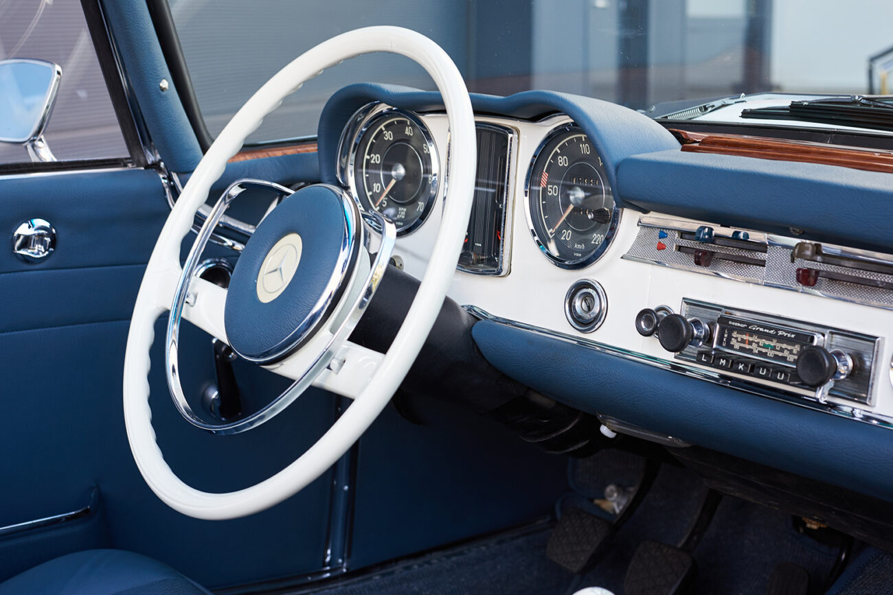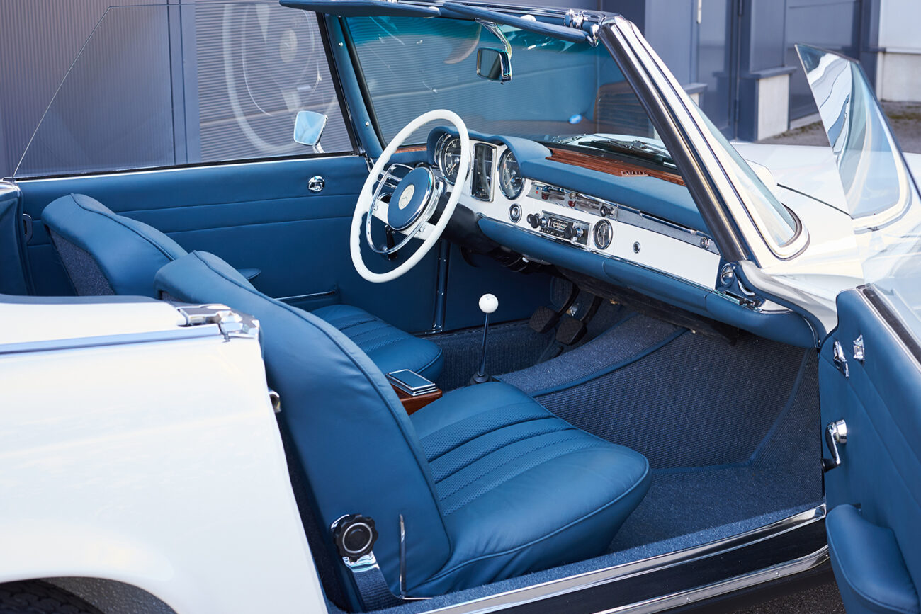 De motor, gangwissel en differentieel werden geheel gereviseerd. Het volledige ophangingsgedeelte van het voertuig werd compleet vervangen. Het gehele interieur met inbegrip van soft-/hardtop werden volgens de Mercedes-Benz Classics normen hernieuwd. De fantastisch originele kleurstelling, “Papyrus wit” met donkerblauw interieur, werd bij de “body off” restauratie behouden.