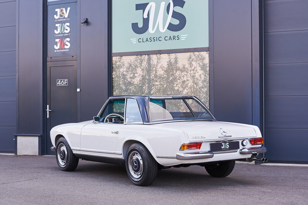 Deze Mercedes-Benz 250 SL werd in 1967 origineel aan de eerste eigenaar geleverd in Colorado, Verenigde Staten. Het voertuig werd in 2005 geïmporteerd naar Europa en werd de afgelopen jaren compleet gerestaureerd. Het voertuig wordt geheel voorgesteld volgens de datakaartgegevens. Kosten, noch moeite werden gespaard tijdens deze vijf jaar durende restauratie, het resultaat spreekt dan ook voor zich. Een zeer uitgebreid fotodossier is beschikbaar.