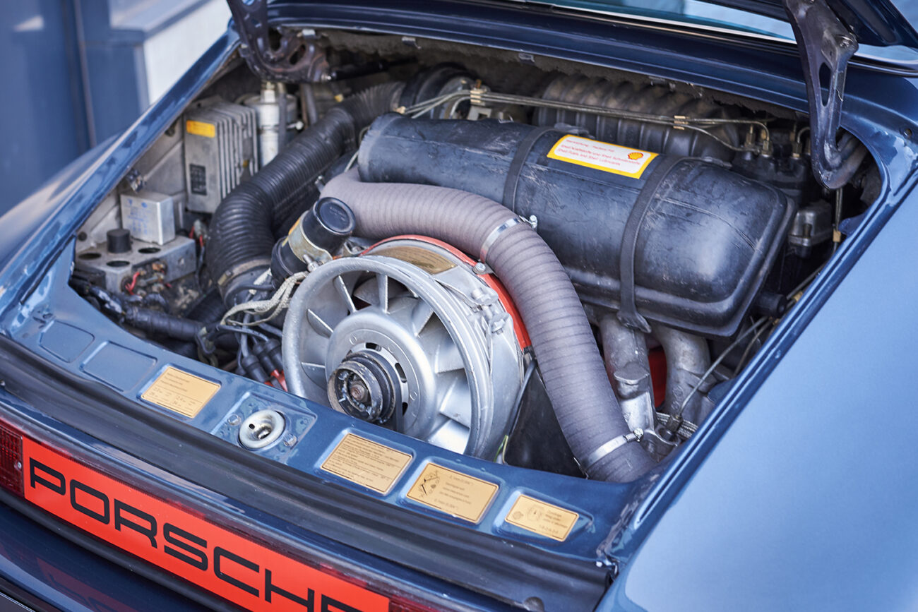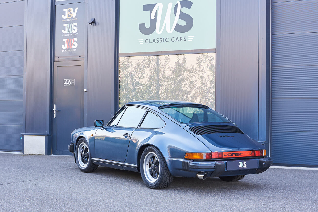 Deze zeer originele Porsche 911 3.0 SC werd in 1982 geleverd in Düsseldorf, Duitsland. Reeds in 1984 werd het voertuig geïmporteerd in België en is sindsdien altijd in België gebleven. Zowel het onderstel, interieur als het fantastische “Pacific blue” lakwerk zijn in zeer goede staat. Op motorisch vlak werd het voertuig geheel onder de loep genomen op basis van totaal revisie. De “Carrera” spoiler vooraan, de iconische Fuchs velgen en het roestvrij stalen uitlaatsysteem maken van deze 911 een absoluut icoon uit de jaren 80.